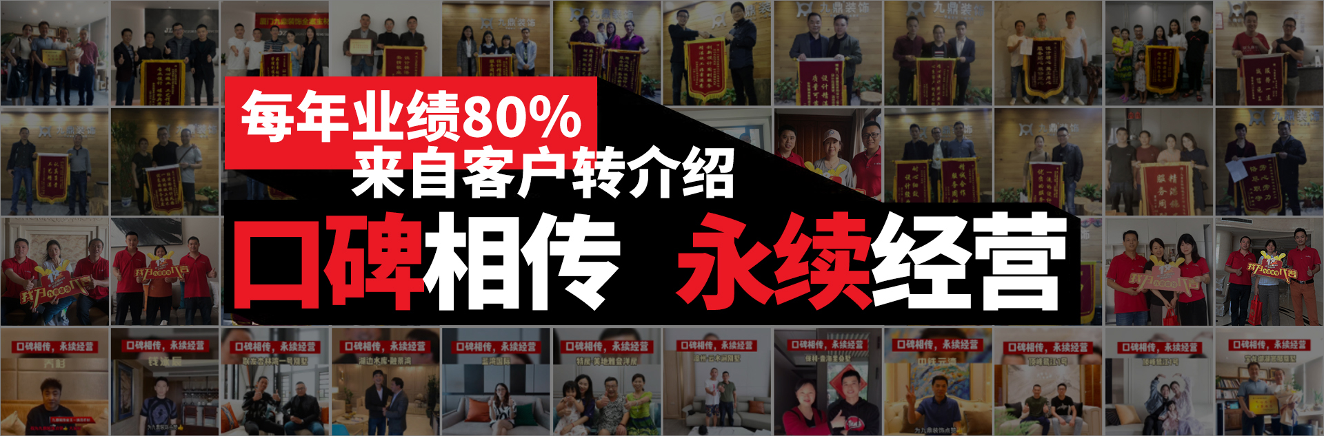九鼎裝飾秉承“口碑相傳,永續(xù)經(jīng)營”的經(jīng)營理念,力求達到“設(shè)計零缺憾、施工 零缺點、材料零抱怨、品質(zhì)零投訴”的“四零”服務(wù)